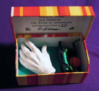 A child sized rapping hand centered in a bizarre presentation with kiddy